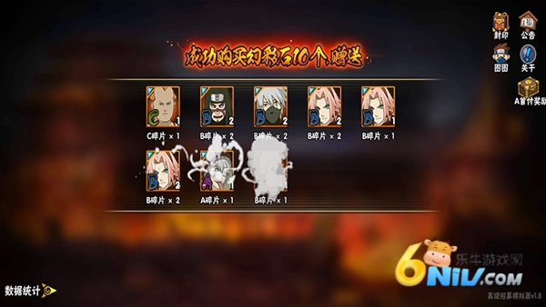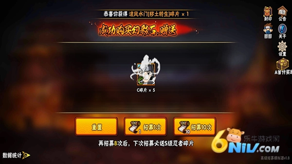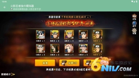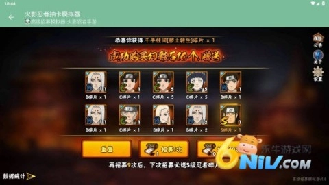 2、模拟器让你可以一次性招募10次,集齐不同的忍者碎片来解锁新的角色。
