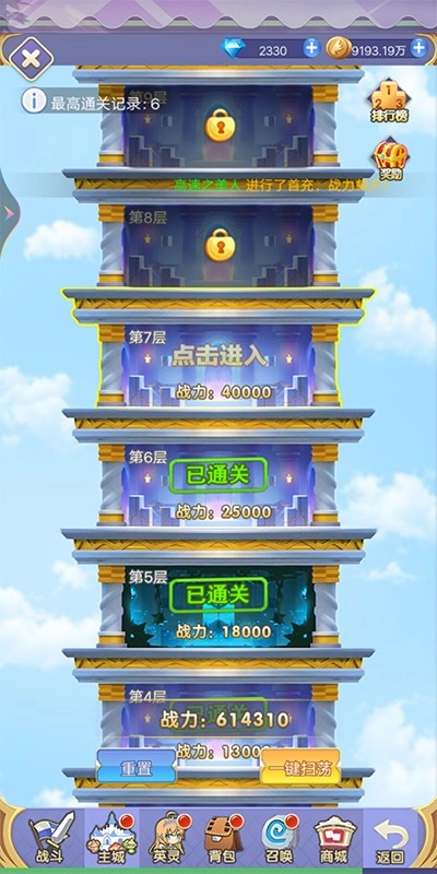 4、修炼之塔每日自动重置,重置后可再次挑战。