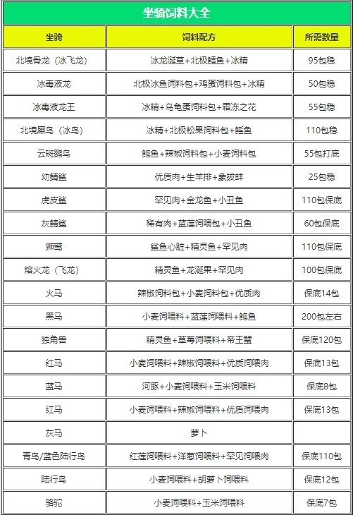 1、红马饲料:优质饲喂肉+饲喂料小麦+饲喂料辣椒(它吃10包饲料)
