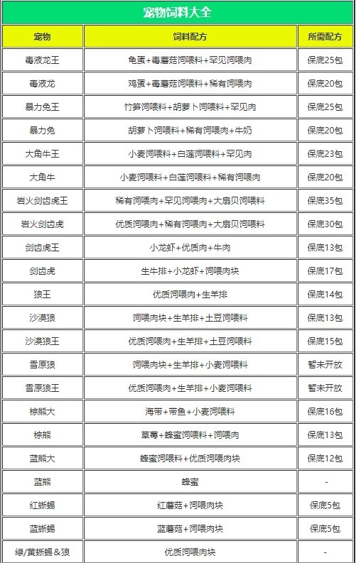 8、沙狼饲料:饲喂肉+生羊排+饲喂料土豆(它吃10包饲料)