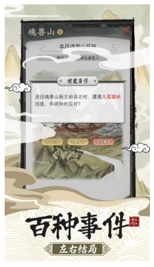 7. 百种事件 — 大至整个宗门的存亡,小至每个弟子的恩爱情仇,每天宗门内总会有很多突发事件等你抉择,这一定程度也会影响宗门的走向...
