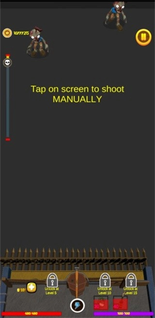 2、刚开始进入游戏时,我们手里只有一把弓箭用来攻击僵尸,这时候玩家可以先在第一个位置部署一名士兵。
