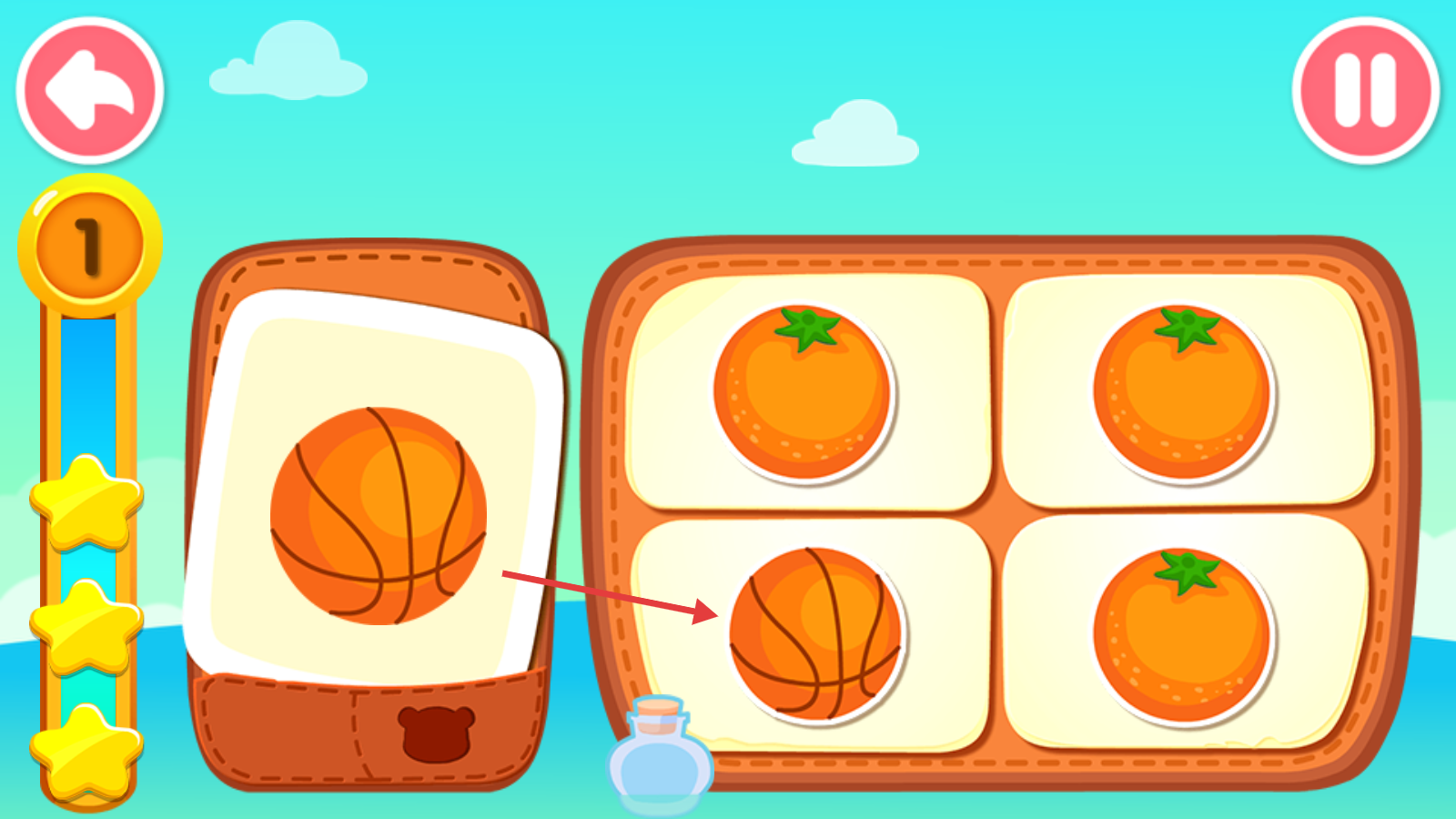 2、背景音乐轻松愉悦:搭配节奏轻快、旋律简单的背景音乐,避免复杂旋律带来的干扰,帮助宝宝在轻松的氛围里专注地完成配对任务。