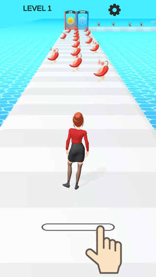 冰火女孩是一款十分有趣的休闲跑酷游戏,游戏里有一位颜值很高的冰火女孩,她得在赛道上穿过两扇门。要通过炎热的大门,就得收集够冰激凌;而要通过寒冷的大门,则需要收集足够的辣椒。
