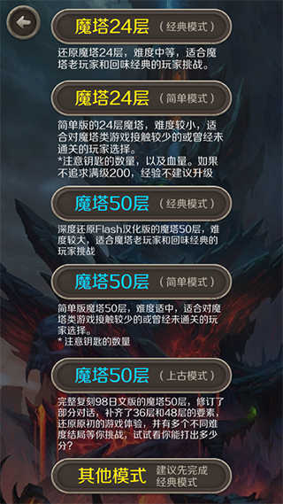 1、新增 魔塔50层的【简单】【上古】模式