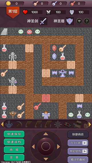 3、第七层的十字架建议留到最后再使用,也就是必须把十字架交给仙子才能挑战魔王的时候再用,因为它是按比例增加攻防数值;同样的,14层左右有个大圣杯能让体力值翻倍,也建议最后使用(其实不用也不影响通关)。要是操作失误导致卡关了,这时候用十字架或者圣杯也可以。