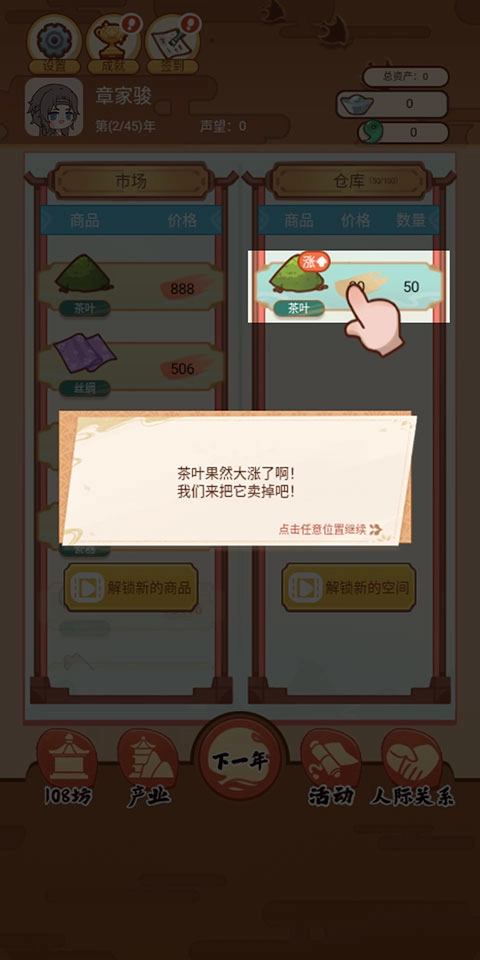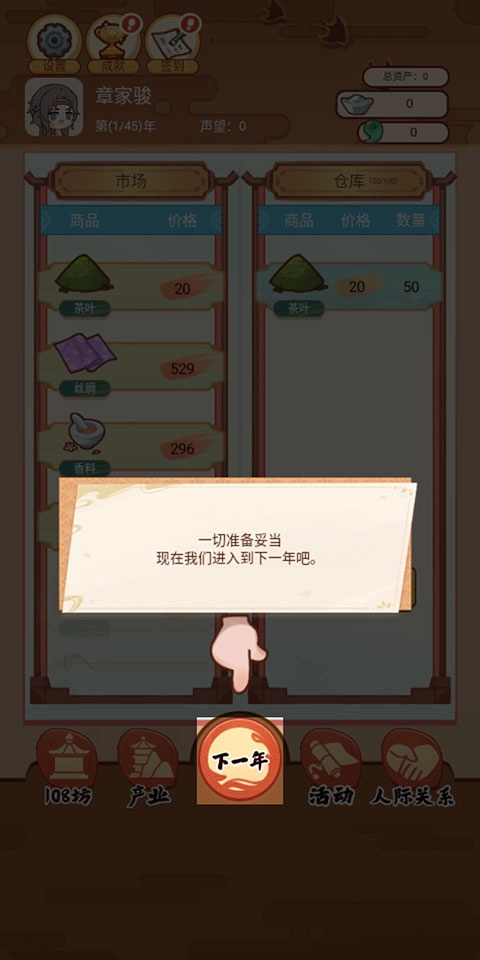 2、玩家需要管理自己的产业和资产,通过种植、交易、投资等方式增加财富,提升社会地位。