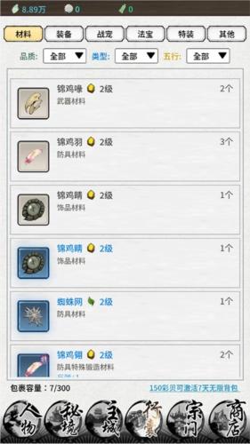 4、获取的资源可以在背包内,玩家可以查看各个资源的使用方法。