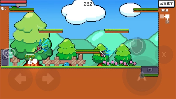 5、游戏操作十分简单,左侧负责移动功能,右侧则集成了攻击、跳跃与防御功能;