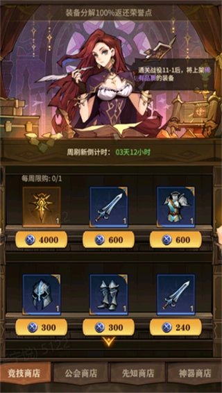 2、低品质的装备被淘汰后可以分解成竞技场代币(无损返还),兑换更高级的装备。