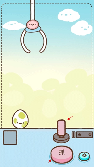 1、进入游戏后,会有一个简单的抓彩蛋环节帮助你快速熟悉流程。首先按住上方的操纵杆来移动最顶部的爪子,待调整到合适位置时,点击下方标有“抓”字的按钮即可。