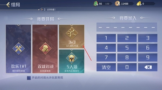 2.接着我们需要选择一种游戏模式,例如下图的3v3模式