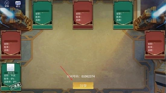 3.然后在游戏房间里,我们只需要点击界面下方的分享按钮,就可以将游戏房间链接分享到微信或者QQ平台