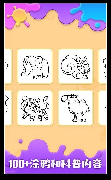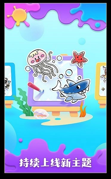 缤纷工具:提供7种涂鸦填色工具,40种缤纷色彩。