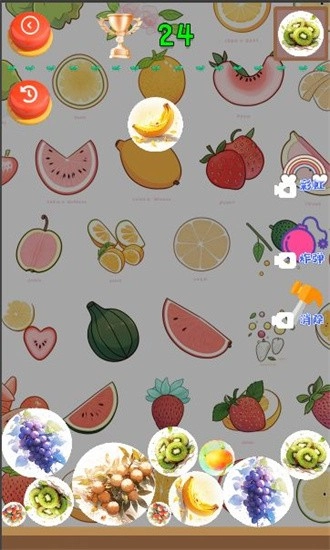 水果快乐消消是一款有趣的消除游戏,玩家能够把相同的水果合成并消除,游戏里还提供多种道具供使用,玩家可以随时重新开启挑战。这款游戏很适合用来打发时间,它的界面设计简约,你能轻松掌握玩法。