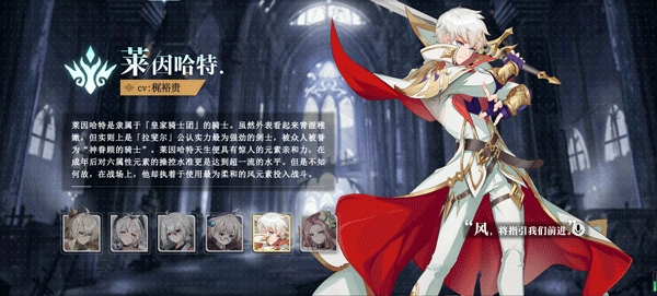 莱因哈特是[皇家骑士团]的一员骑士。他的外表虽显青涩稚嫩,却被[拉斐尔]公认为实力最强的剑士,有着“神眷顾的骑士”的美誉。莱因哈特天生拥有惊人的元素亲和力,成年后对六属性元素的操控已达超一流水准。不过,在战场上他却格外执着于使用最为柔和的风元素作战,其中缘由不得而知。