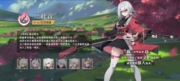 荒神联动角色三叶音,是一位性格善良温柔、总爱设身处地为他人着想的少女。她所在的村庄曾遭受荒鬼袭击,这让她痛失最后的亲人。为了完成弟弟“拔除世间所有荒鬼”的夙愿,三叶音毅然决定加入斩鬼一番队。