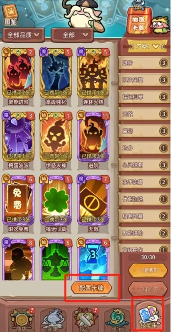 在开始战斗前,先进入[技能卡]页面,点击[配置卡牌]挑选自己需要的卡牌。