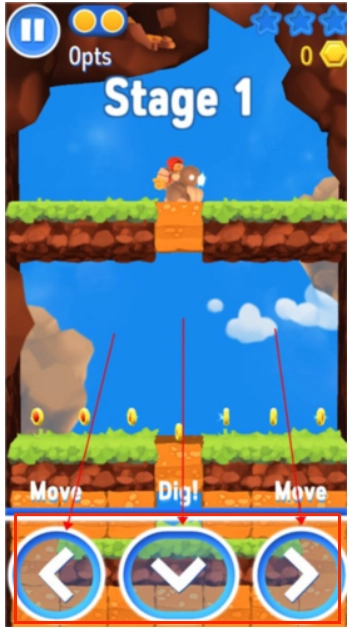 2、操作方式简单易上手,只需通过虚拟按键即可控制鼹鼠进行挖掘与移动。