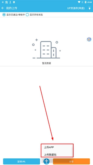4、选择需要上传的App或数据包;