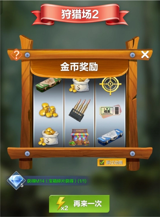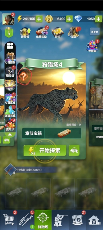 同时每次获得宝箱后,可以在狩猎场界面下方开启宝箱,有概率开出金币、枪械等奖励~