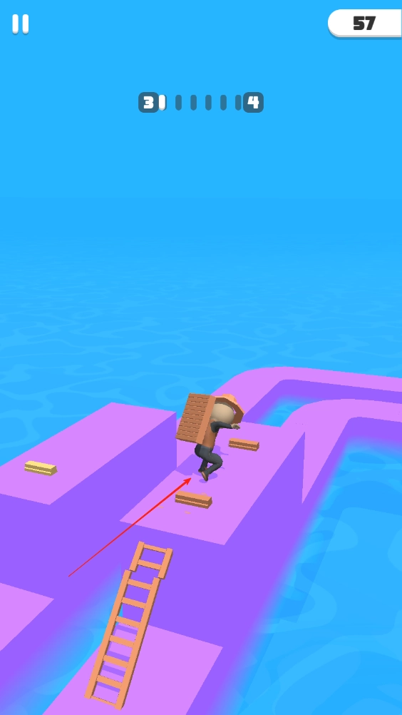 3、冲过终点线之后,站在终点线前背上的剩余材料会全部搭建成梯子,搭的越高,碰到的区域奖励越丰厚。