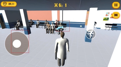3、在关卡1里操控角色,前往候诊区域,和患者进行互动,以此推进诊疗的流程。