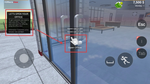 3、清理完垃圾,来到办公室玻璃门,点击【OpenOffice】开门,准备营业,迎接客户。