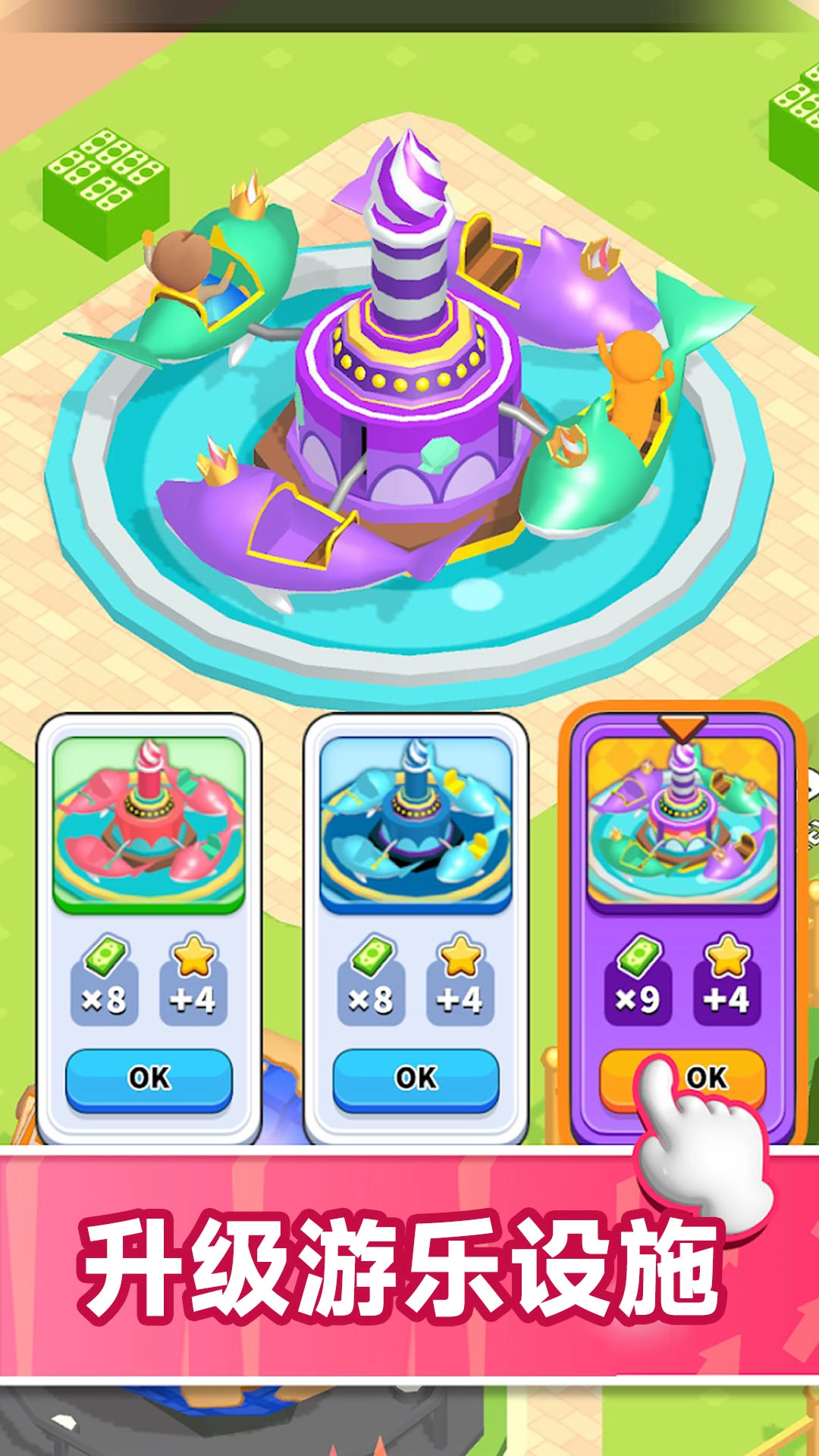 2、收集游戏资源,搭建各类娱乐设施,并且可以对设施进行升级,增强游玩体验。