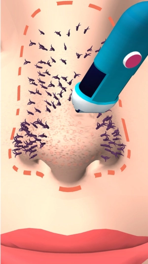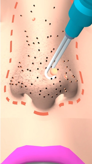 玩家可对屏幕上的鼻子区域进行双指捏合操作来挤压黑头,再结合滑动动作清理掉残留的污垢,以此完成从黑头发现到彻底清除的整个流程。