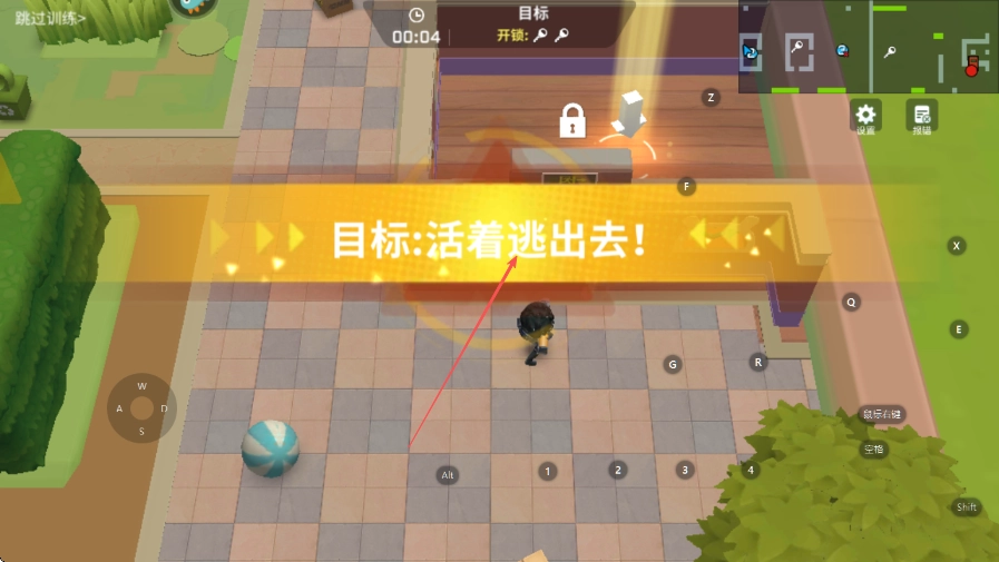4、找到黄色宝箱后,靠近并进行开锁操作,获取钥匙以打开逃生门。
