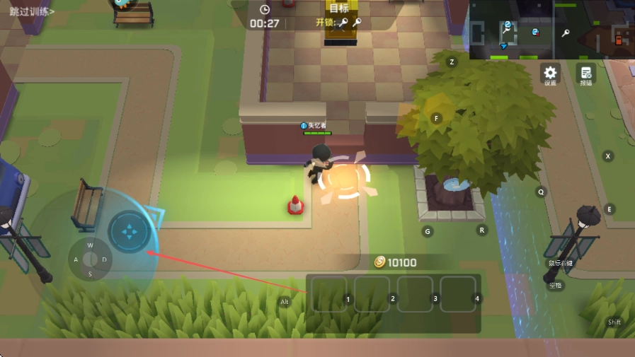 2、通过屏幕左下方虚拟摇杆操控角色移动,在场景中探索搜寻。