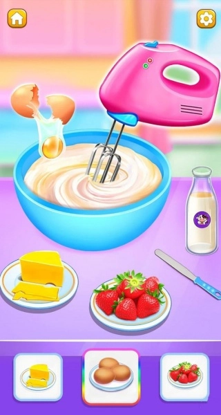 2. 游戏模拟了从食材准备、蛋糕烘烤,到奶油裱花和最终装饰的完整蛋糕制作流程。