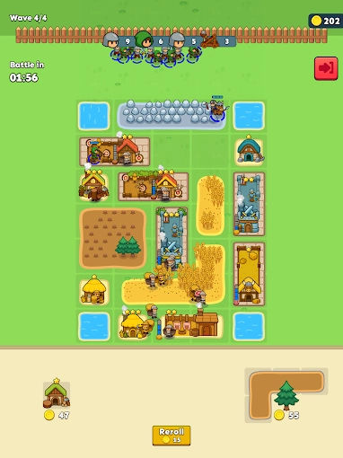 1、《种田与征战》手机版中,你可以将各具特色的农田、房屋与建筑布置在格子里,以此来管理各类资源,推动自身经济的发展,同时还能训练自己的部队。