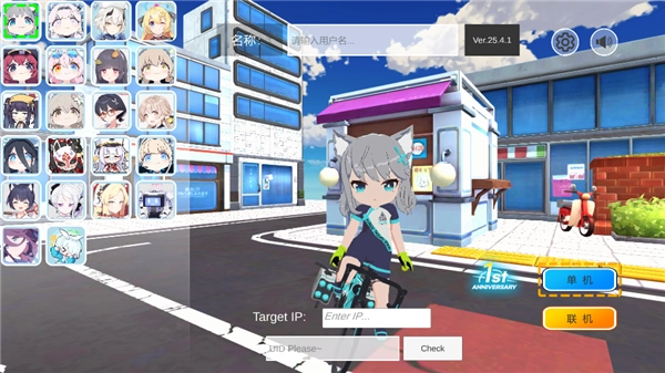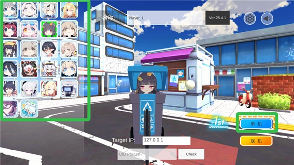 1、打开蔚蓝档案卡丁车游戏,挑选角色后,点击【单机】选项。