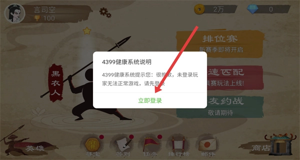 1、在打开标枪王者后,可以通过点击弹窗中的立即登录按钮,进行登录操作。