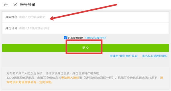 4、进入实名认证页面后,依次点击上方的输入框填写姓名与身份证号,随后点击提交按钮,就能完成注册流程。