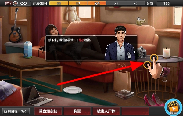 1、跟随指引尝试放大缩小功能,在案发现场场景中,按照提示操作,开启新的寻物体验,探索更多玩法。