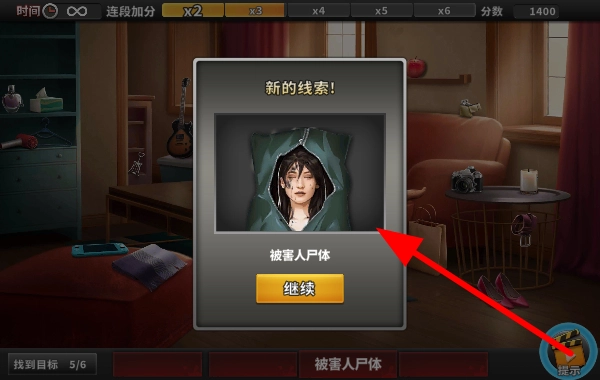 3、找到关键物品,如被害人尸体,会获得新的线索,点击继续,推进案件调查的剧情发展。