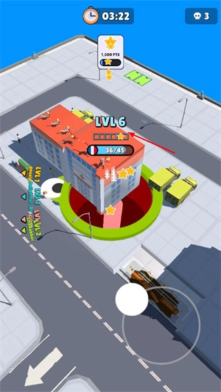 2、选择关卡后点击PLAY开始游戏,操控黑洞在城市场景中移动,吞噬物体。