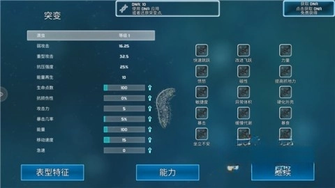 4、想让自己的细菌虫变得更强?点击上方的DNA图标,就能自主调整细菌的各项属性啦。