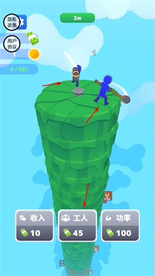 2、雇佣工人,增加挖矿力量,提升挖矿进度,为后续发展奠定基础。