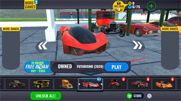 进入游戏后,先从车库里挑选FUTURISMO型号的赛车,接着点击PLAY按钮,就能开启第一章节的任务挑战了。