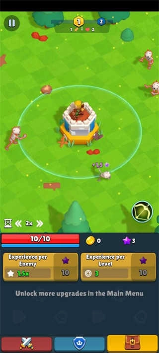 2、在充满神秘色彩的魔法世界里,奋力击退邪恶怪物的入侵,借助提升弓箭手攻击力的方式,去对抗更为强大的敌人。