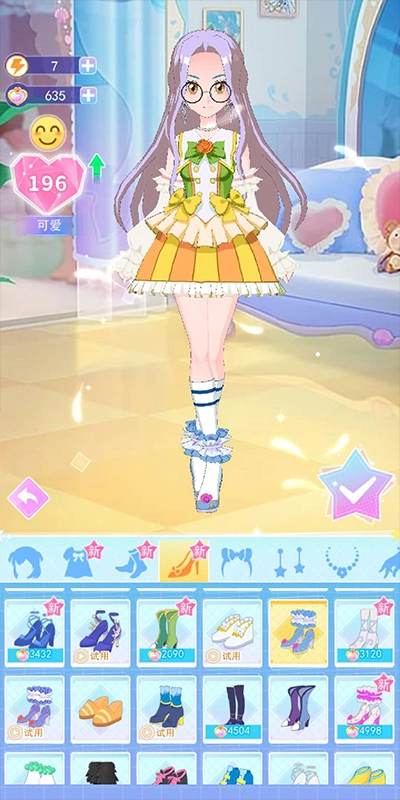 5、我们还为大家准备了上百种不同风格的服装,大家可以自由搭配出独特造型,此外还有更多精美贴纸和创意装饰品可供使用。
