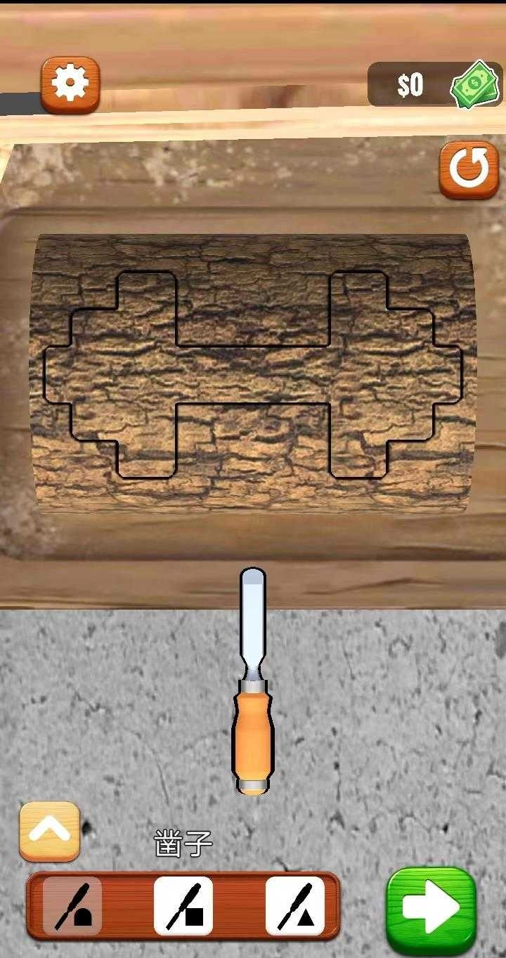 3、多样的关卡可供挑战,每一关都有着不一样的要求,你也能自由地发挥,开展削木头的操作。