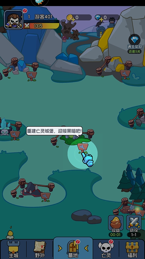 1、进入游戏后先来建设我们的亡灵城堡。