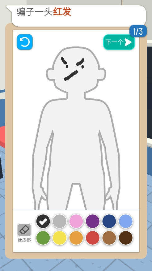 3、根据受害者提供的信息,用画笔在游戏界面绘制嫌疑人的相貌特征。