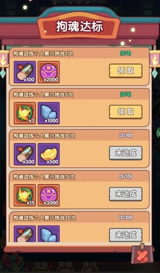 1、挑战达标奖励:根据玩家当期活动对所有bos的挑战次数之和,领取对应的达标奖励。
