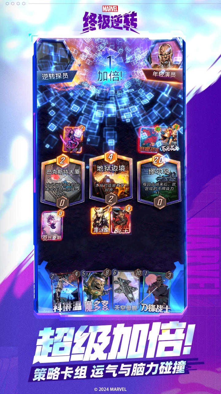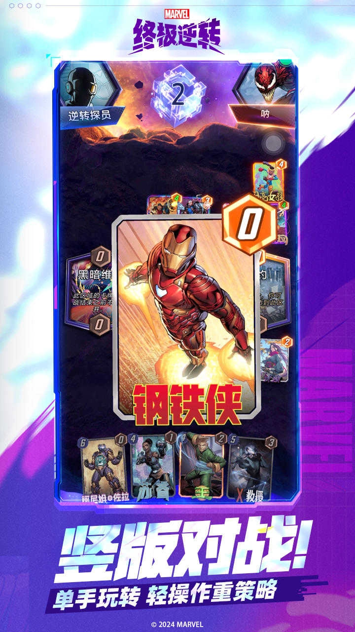 《漫威终极逆转》是一款围绕漫威超级英雄打造的策略对战卡牌游戏。玩家可组建专属的超级英雄卡组,与其他玩家展开对战。每一张超级英雄卡牌都具备独特的技能与属性,玩家需要依据对手的卡组配置和战场局势,巧妙搭配并部署卡牌,从而战胜对手。